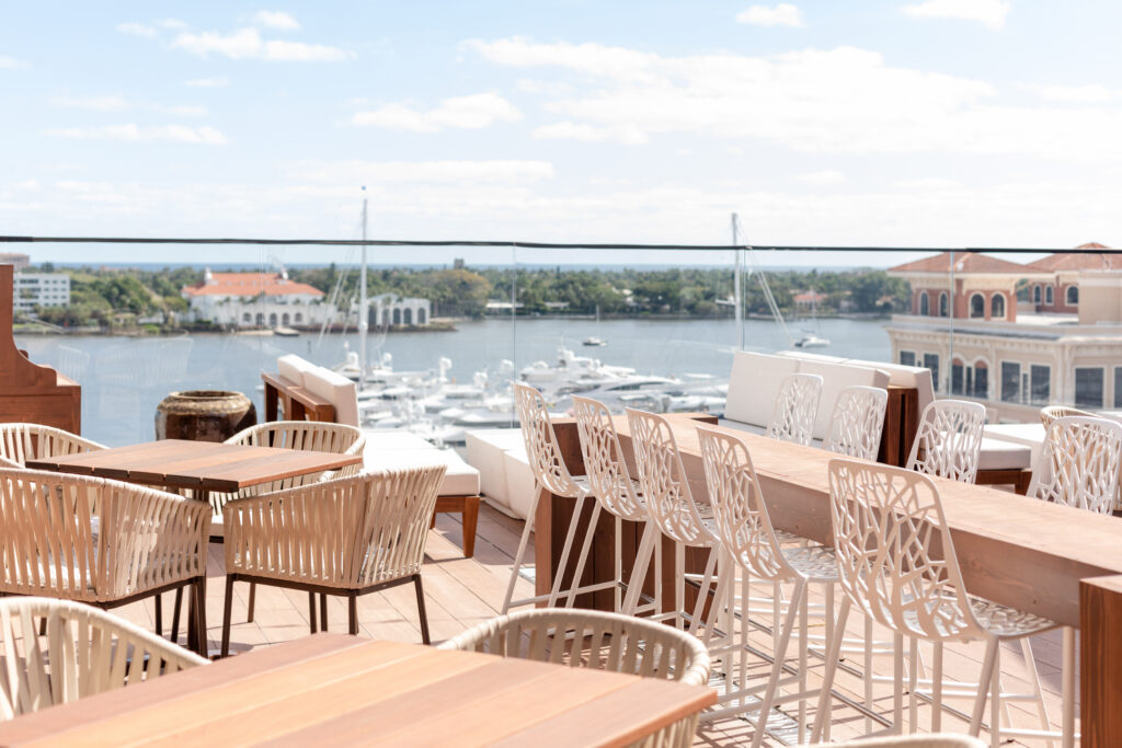 Located atop The Ben Hotel, Spruzzo is one of Downtown West Palm Beach’s most popular settings for a rooftop meal. The restaurant offers unobstructed, sweeping views of the Intracoastal Waterway, and when the sun goes down, it’s one of the best seats in the city to view the sunset. The menu here is seafood-focused and features an extensive raw bar, as well as a seafood tower of oysters, lobster tail, and jumbo shrimp. If you’d prefer ‘turf” over ‘surf’, there’s also delicious lemon chicken and tender wagyu steak. And for weekend brunches, you can look forward to digging into lollipop lamb chops and petit lobster rolls. Elevate your brunch with a Saint-Tropez Martini, infused with elderflower liqueur, cucumber, mint, and lemon.